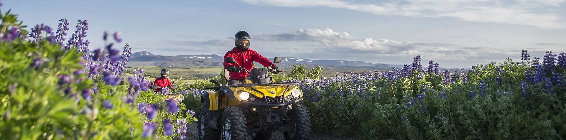 This tour is an extended version of the Mountain Safari, adding an extra peak to the experience. A bit more technical and definitely a more complete ATV adventure, combining gravel roads, mountain trails, rocky paths, and steep climbs. Ride through the scenic wilderness and enjoy breathtaking views of Reykjavik from not one, but two peaks. Each ATV has two seats and prices are listed per person; if you prefer to ride solo, a supplement applies. The adventure starts as we depart from our base camp, beginning on a paved road before turning onto a gravel path along the beautiful Lake Hafravatn. After that, we follow a mountain trail all the way to the top of Hafrafell. From the summit, you’ll enjoy stunning views over Reykjavik and the surrounding mountain range.