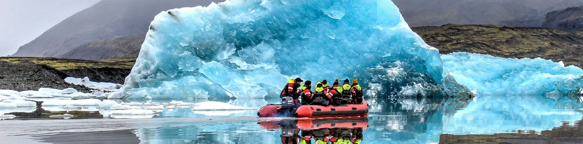 Before departure, waterproof jackets and life vests are provided by the operator. Onboard the zodiac, you will glide through the lagoon, passing close to icebergs that are constantly changing shape and position. The sound of cracking ice creates a special atmosphere as you approach the glacier wall of Vatnajökull and experience its grandeur.