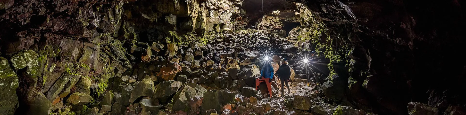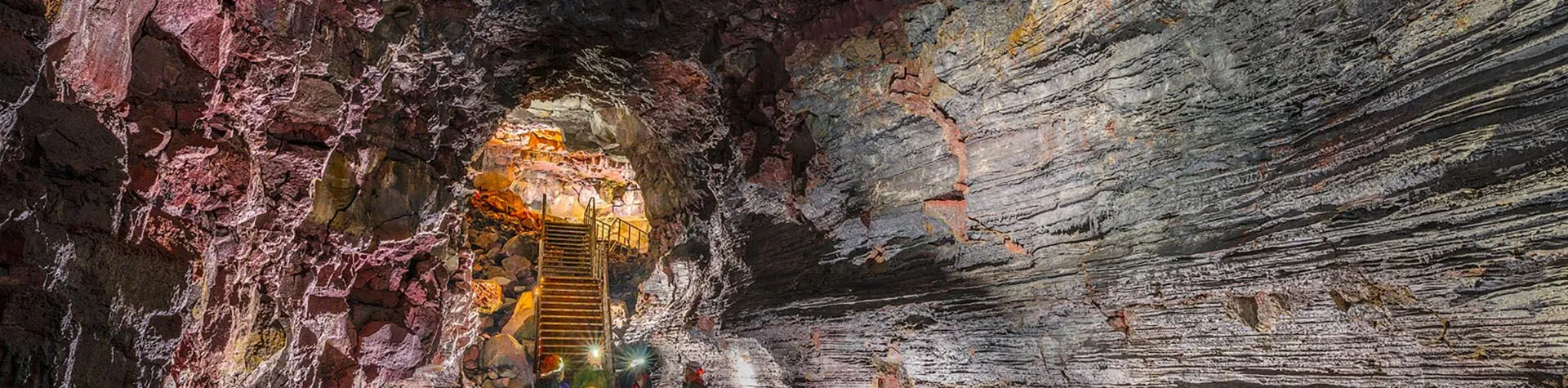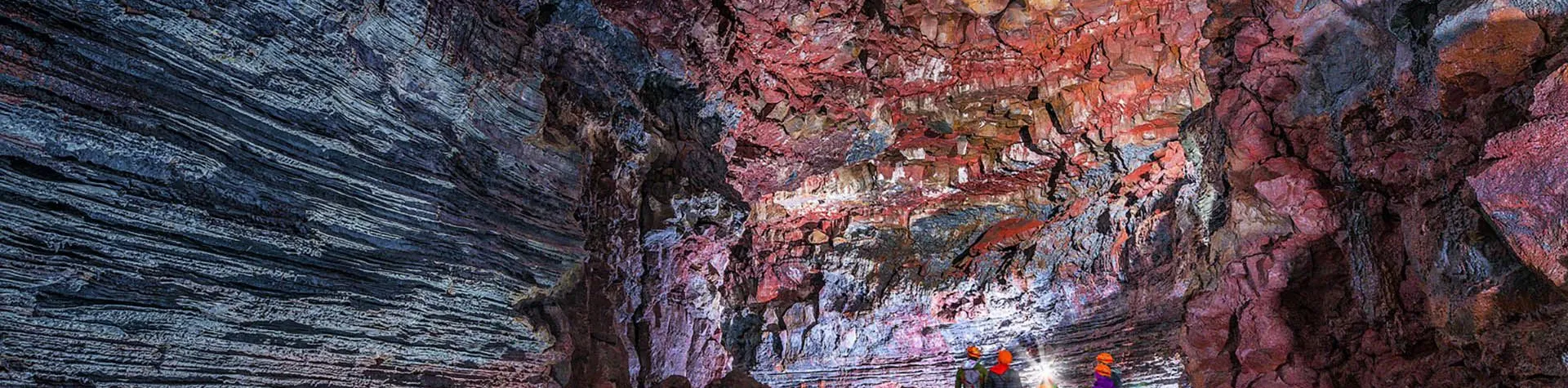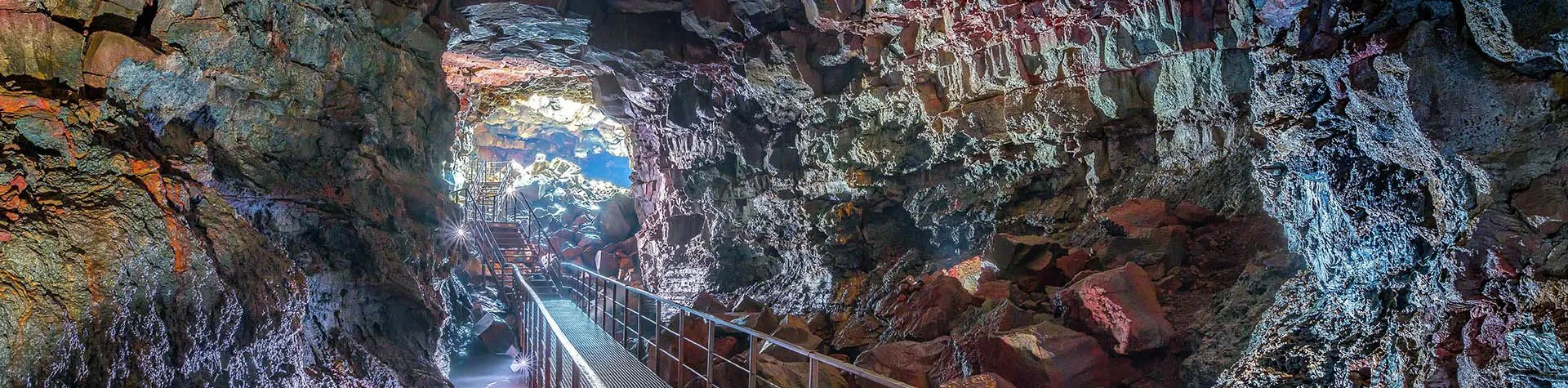 We will witness the inner workings of a volcanic eruption while we walk in the path of a lava that flowed thousands of years ago. The lava tunnel is one of the biggest in Iceland and gets up to 30 metres wide and 10 metres high. The lava tube ceiling has caved in near the entrance, which creates beautiful columns of light. The fantastic range of colours of the tunnel wall is caused by the different mineral types of the rock.