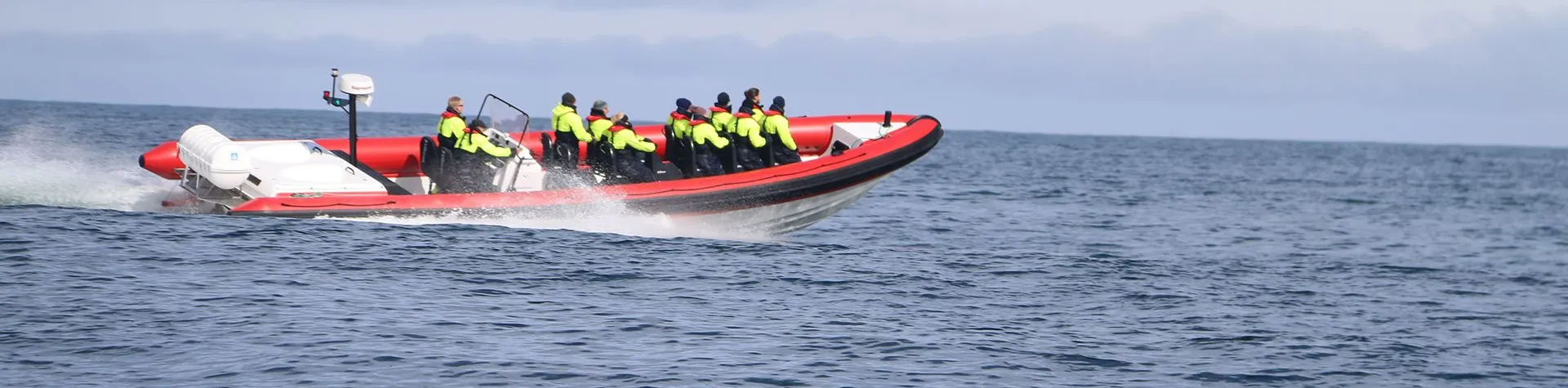 On this rib boat tour you will experience stunning nature, whales, puffins and Reykjavík from the sea. On the way out to the whale area we stop at Akurey where the puffins live. Then we pump up the adrenaline and test the speed of the rib boat as we head out towards the whales, where we have plenty of time to see these majestic animals up close. On the way back to the harbor we take a beautiful route along Reykjavík’s coastline – a perfect photo opportunity!