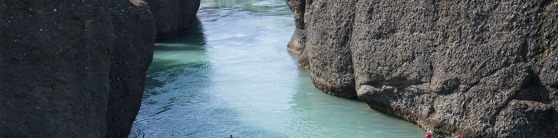 From Gullfoss waterfall, a glorious canyon descends down, creating the perfect scenario for a fun rafting experience. The Hvítá river originates from Langjökull glacier and has a perfectly balanced mix of serene canyons and adrenaline pumping waves and rapids. On this beautiful rafting journey you raft down 7 kilometres, enjoying a view you can only experience while floating downstream in a boat. You will be making a stop at Brúarhlöð canyon where the thrill-seekers can cliff jump into the river below if the conditions allow.