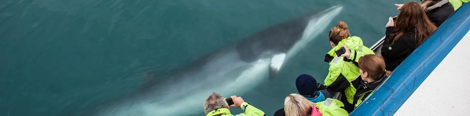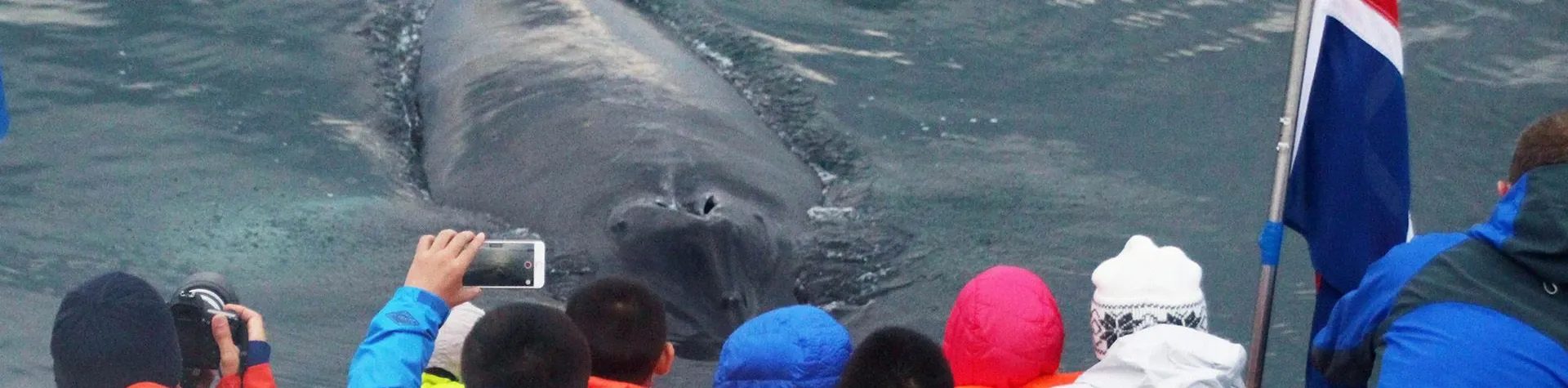 With this excursion, you and your companions will embark on one of Iceland's largest whale watching boats, boasting a fantastic interior and a spacious deck where everyone can safely observe whales. The experience is also focused on education and incorporates interactive elements to provide you with the opportunity to learn more about these ocean giants. The guide will point out where you can spot the whales and share information about the various types of whales and birds you may encounter. The entire excursion is conducted with a spirit of respect and conservation for wildlife – we let the whales come to us instead of the other way around. The whales you may have the opportunity to see include humpback whales, white-beaked dolphins, common dolphins, and minke whales.