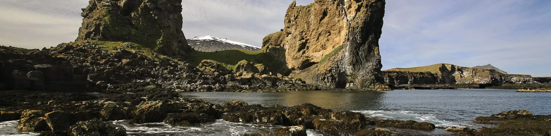 The Snæfellsnes peninsula in western Iceland is a place shrouded in mystery. The sleeping and glacier covered volcano Snæfellsnes overlooks the peninsula, surrounded by landscape formed by the sea and lava.